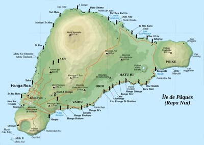 Certains moais elles sont pourvues d’un couvre-chef taillé dans une pierre de couleur rouge et qui représente sans doute la coiffure en chignon coutumière de l’ile. Sans que l’on puisse dire exactement quand a débuté mise en place de ces géants, on pense que la grande majorité des moais ont été taillés entre le 14éme et le 17éme siècle. Si la technique de la taille (à même le flanc du volcan) est parfaitement connue, il reste de nombreuses questions sur la façon dont les moais ont pu être mis en place sur les sites où on les a découverts, c'est-à-dire en bordure des côtes pour la grande majorité. Suite aux diverses guerres tribales qui ont parsemé l’histoire de l’ile de Pâques, l’ensemble des moais avait été jetés bas de leur talus.